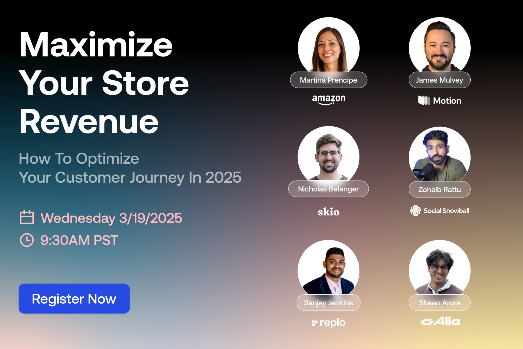 Hi everyone! We’re teaming up with 5 top ecommerce tech leaders this Wednesday 3/19 to talk about how you can scale store revenue faster than ever. Learn how you can optimize customer flows from first click on ad to checkout. Our speakers include: